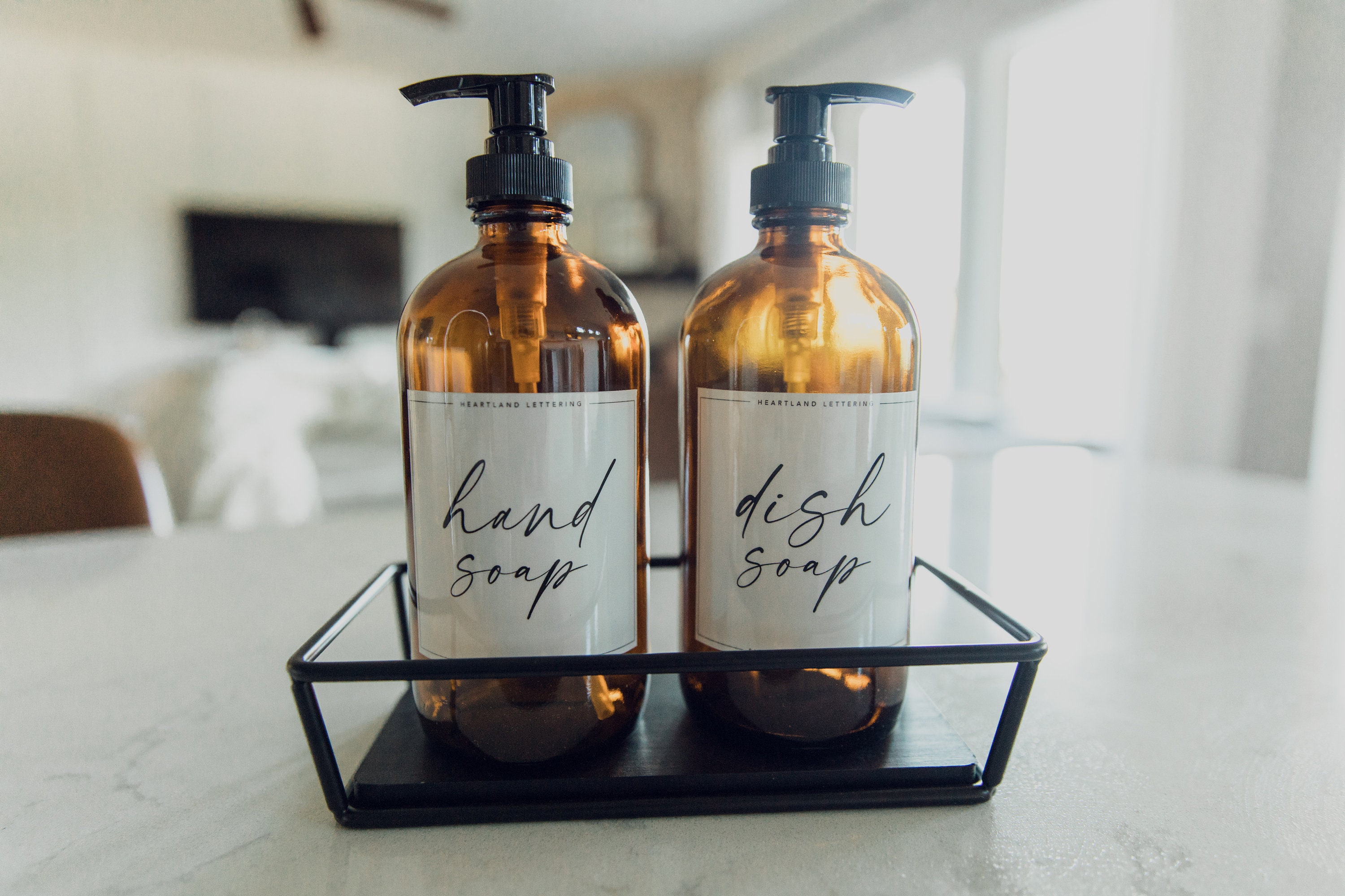 Hand Soap And Dish Soap Set Of 2 16 Oz Amber Glass Dispensers Etsy De